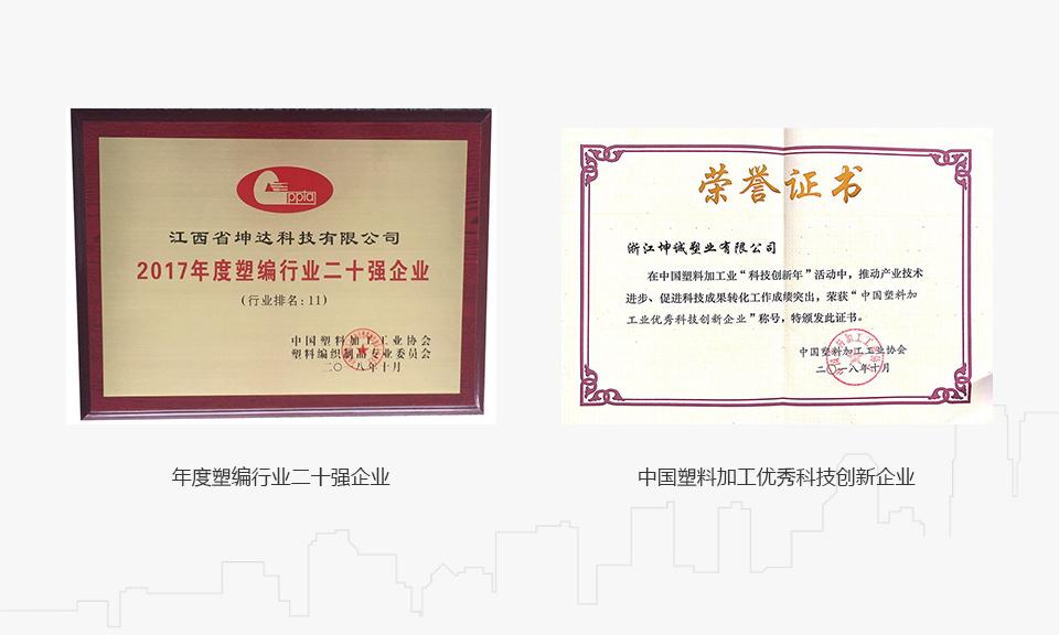 坤達(dá)集團(tuán)始創(chuàng)于2003年,是一個(gè)集技術(shù)研發(fā)、品牌運(yùn)營(yíng)、規(guī)模化生產(chǎn)的塑編包裝產(chǎn)業(yè)鏈企業(yè)。旗下三大生產(chǎn)基地為浙江坤誠(chéng)塑業(yè)有限公司、江西省坤達(dá)科技有限公司和江蘇坤達(dá)塑業(yè)有限公司,綜合實(shí)力榮登中國(guó)塑編行業(yè)十強(qiáng)企業(yè),其中浙江坤誠(chéng)塑業(yè)有限公司獲評(píng)“國(guó)家高新技術(shù)企業(yè)”、“中國(guó)科技創(chuàng)新新銳企業(yè)”、“浙江塑料包裝企業(yè)研究開(kāi)發(fā)中心”、“浙江省智能工廠(數(shù)字化車間)”、“浙江制造”團(tuán)體標(biāo)準(zhǔn)起草單位、“溫州市工業(yè)互聯(lián)網(wǎng)平臺(tái)”、“溫州市兩化融合試點(diǎn)企業(yè)”等榮譽(yù)稱號(hào)。